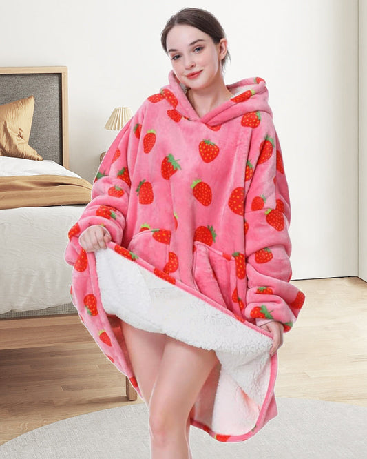 Lockerer Kapuzenpullover mit Erdbeer-Print