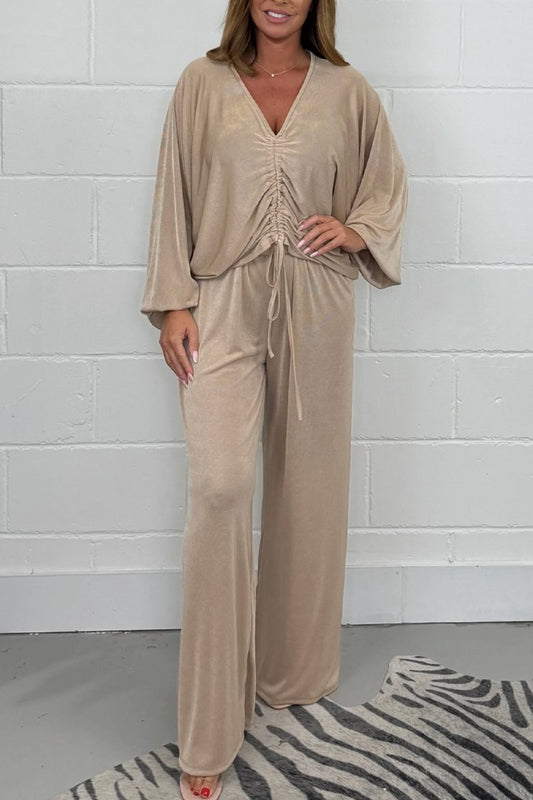 Kombiteil aus Oberteil und Hose mit gerüschter Vorderseite für Damen