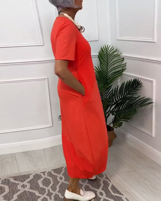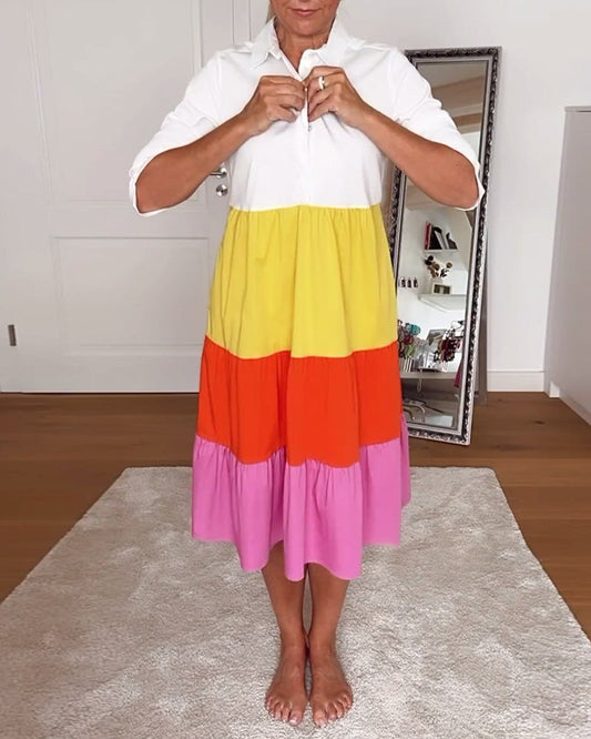 Lässiges Kurzarmkleid mit Farbblockdesign und U-Ausschnitt