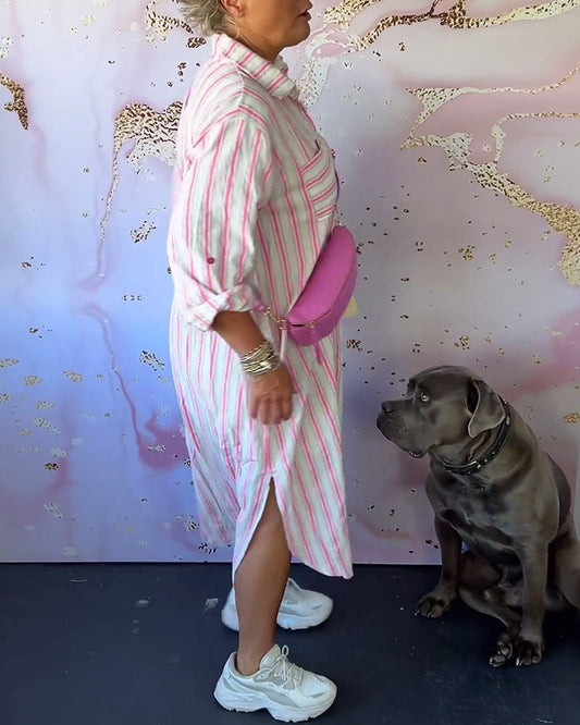 Lässiges Kleid mit Reversknopf und Streifenmuster