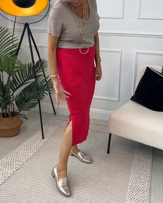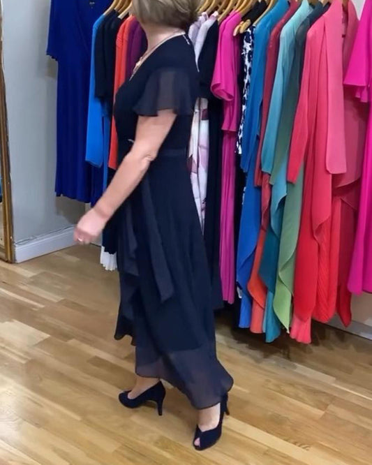 Einfarbiges, fließendes, elegantes Kleid mit V-Ausschnitt