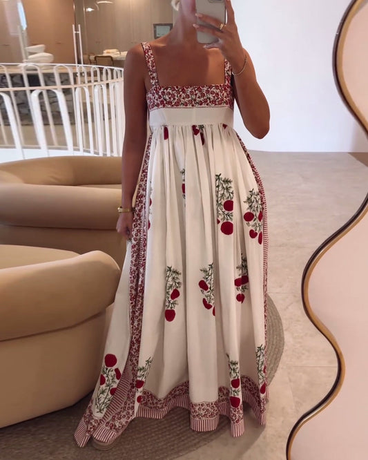 Modisches ärmelloses Kleid mit V-Ausschnitt und Kontrastdruck
