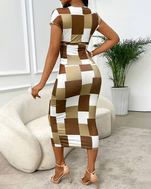 Elegantes Kleid mit V-Ausschnitt und Karomuster