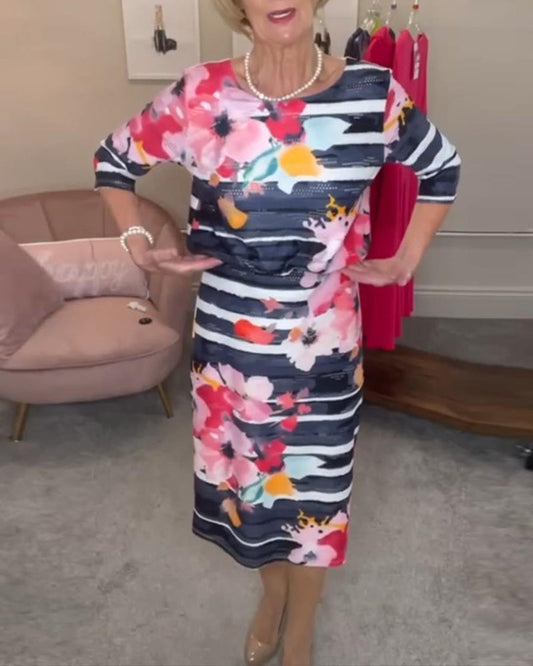 Elegantes Kleid mit Rundhalsausschnitt und Blumendruck