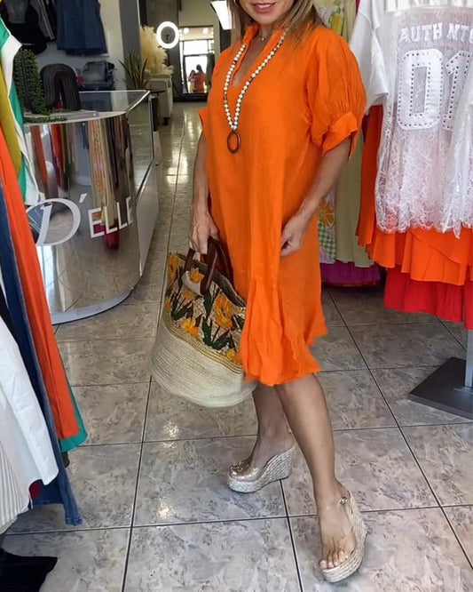 Kleid mit Laternenärmeln, Kordelzug und V-Ausschnitt
