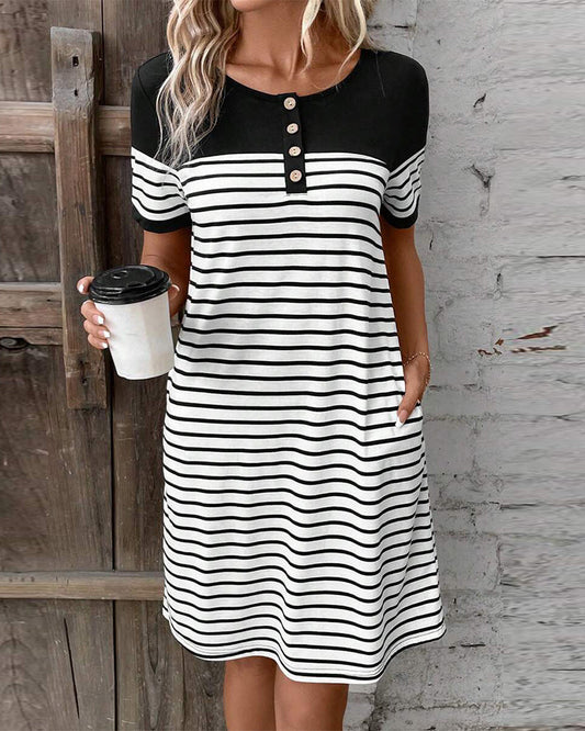 Lässiges, gestreiftes, kontrastierendes, gerades Kleid