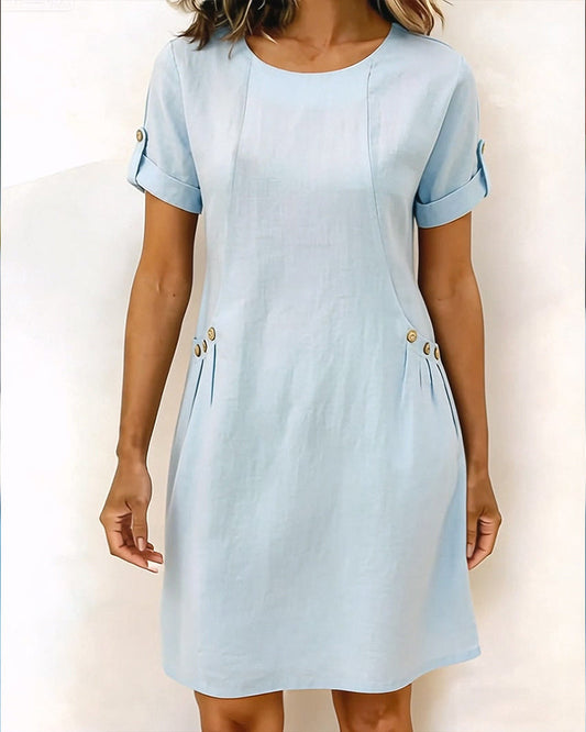 Flaxen Solid Simple Straight Dress