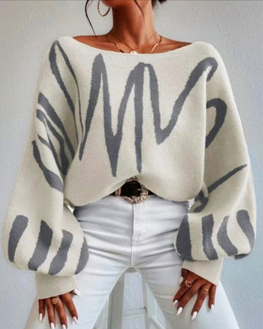 Modischer Pullover mit Laternenärmeln und einer Schulter