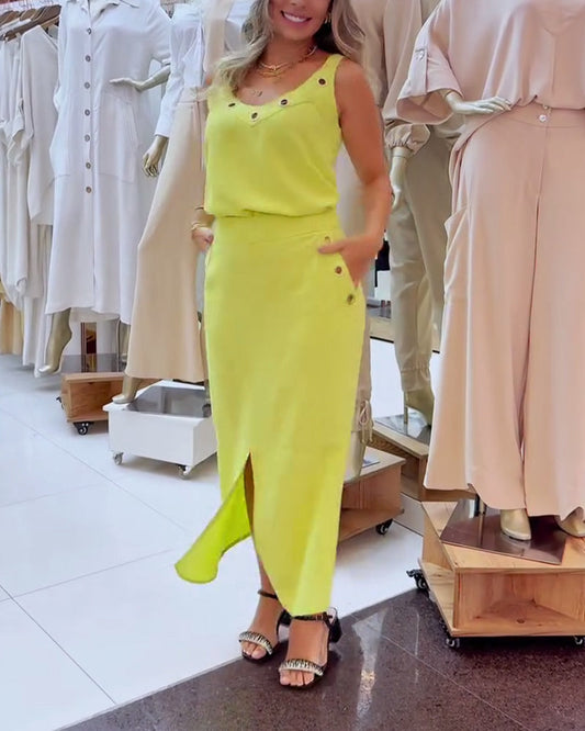 Lässiges, einfarbiges, ärmelloses, unregelmäßiges, schmales Set