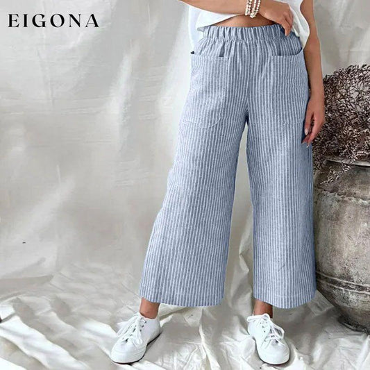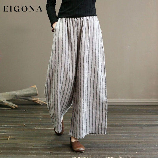 【Baumwolle und Leinen】Lässige gestreifte Hose mit weitem Bein