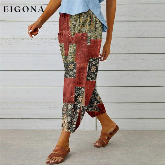 【Baumwolle und Leinen】 Vintage-bedruckte Hose