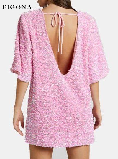 Halbärmliges Minikleid mit Pailletten am Rücken und Schnürung