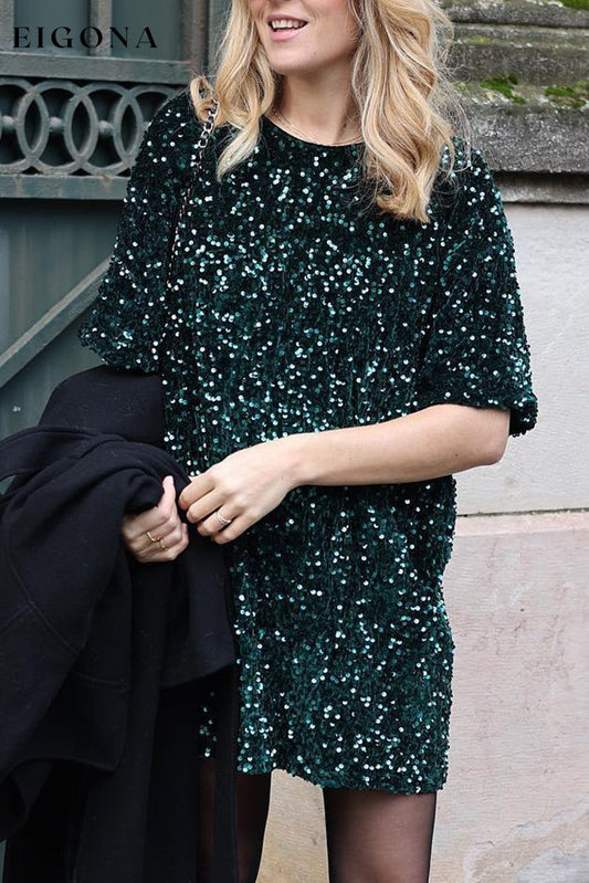 Skobeloff Samt-Pailletten-Minikleid mit kurzen Ärmeln