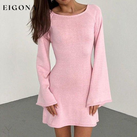 Neues, sexy, rückenfreies, lockeres Strand-Urlaubskleid mit Glockenärmeln für Damen