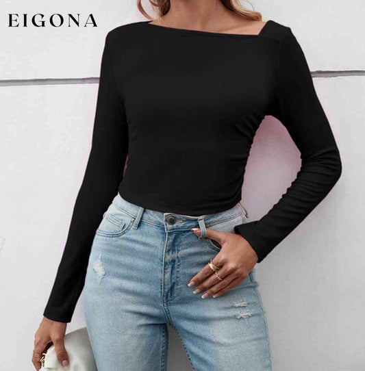 Asymmetrisches Langarm-Basic-Casual-Topl, Langarm-T-Shirt mit asymmetrischem Ausschnitt