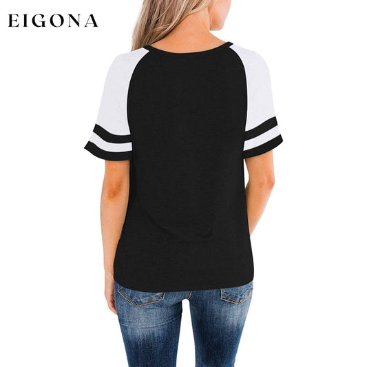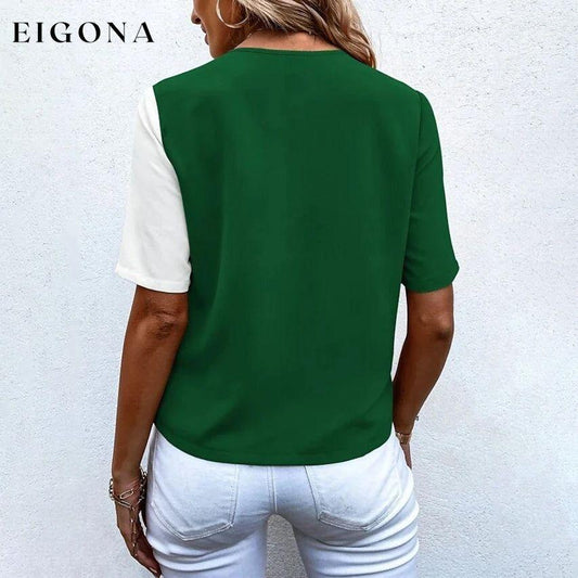 Kurzarmhemden für Damen, Rundhalsausschnitt, Farbblock