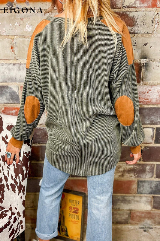 Lorbeergrünes kontrastierendes Patchwork-Oberteil mit V-Ausschnitt und Kordel