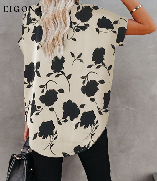 Neues, lässiges, kurzärmliges Hemd mit Blumendruck für Damen und V-Ausschnitt
