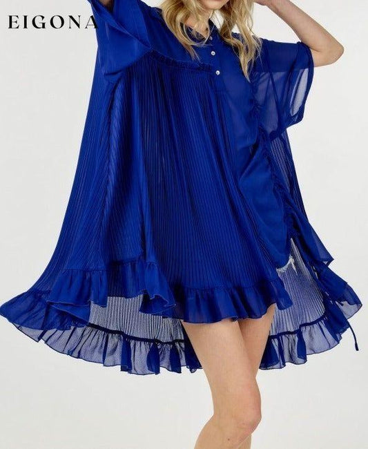 Einfarbiges, kurzärmliges Hemdblusenkleid für Damen mit Falten