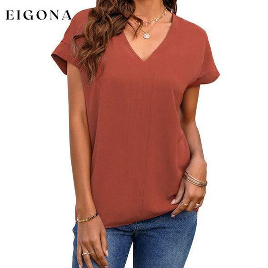 Solides Damen-T-Shirt mit V-Ausschnitt und kurzen Ärmeln