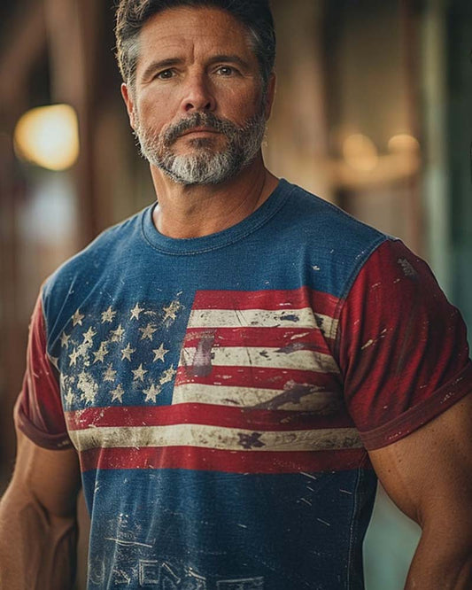 Herren-T-Shirt mit Vintage-Aufdruck „Amerikanische Flagge und Unabhängigkeitserklärung“
