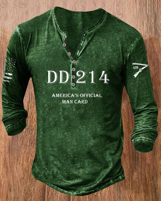 Lässiges Henley-T-Shirt für Herren DD214 mit offiziellem „Man Card“-Aufdruck aus Amerika