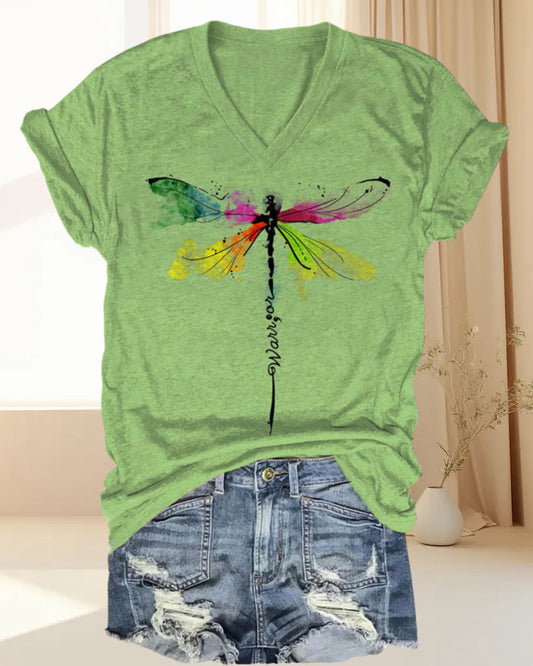 Lässiges T-Shirt mit V-Ausschnitt und Buchstaben-Kreuz-Print