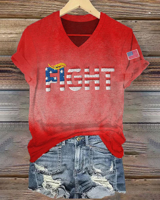 Lässiges T-Shirt mit Kampf-Print in amerikanischer Flagge
