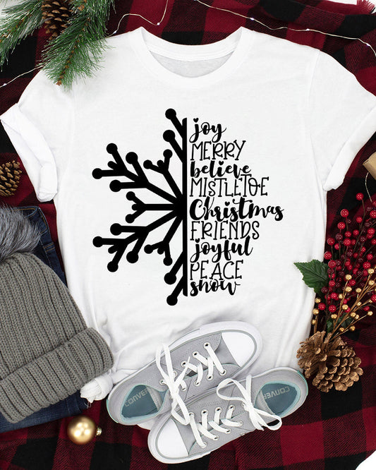 Lässiges T-Shirt mit Schneeflocken-Print und Schriftzug „Frohe Weihnachten“
