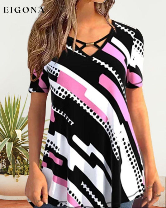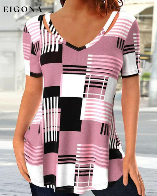 Kariertes T-Shirt mit V-Ausschnitt