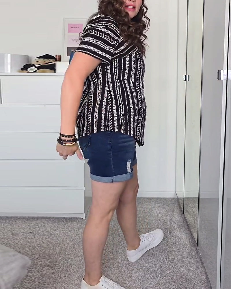 Lässiges bedrucktes T-Shirt mit Rundhalsausschnitt