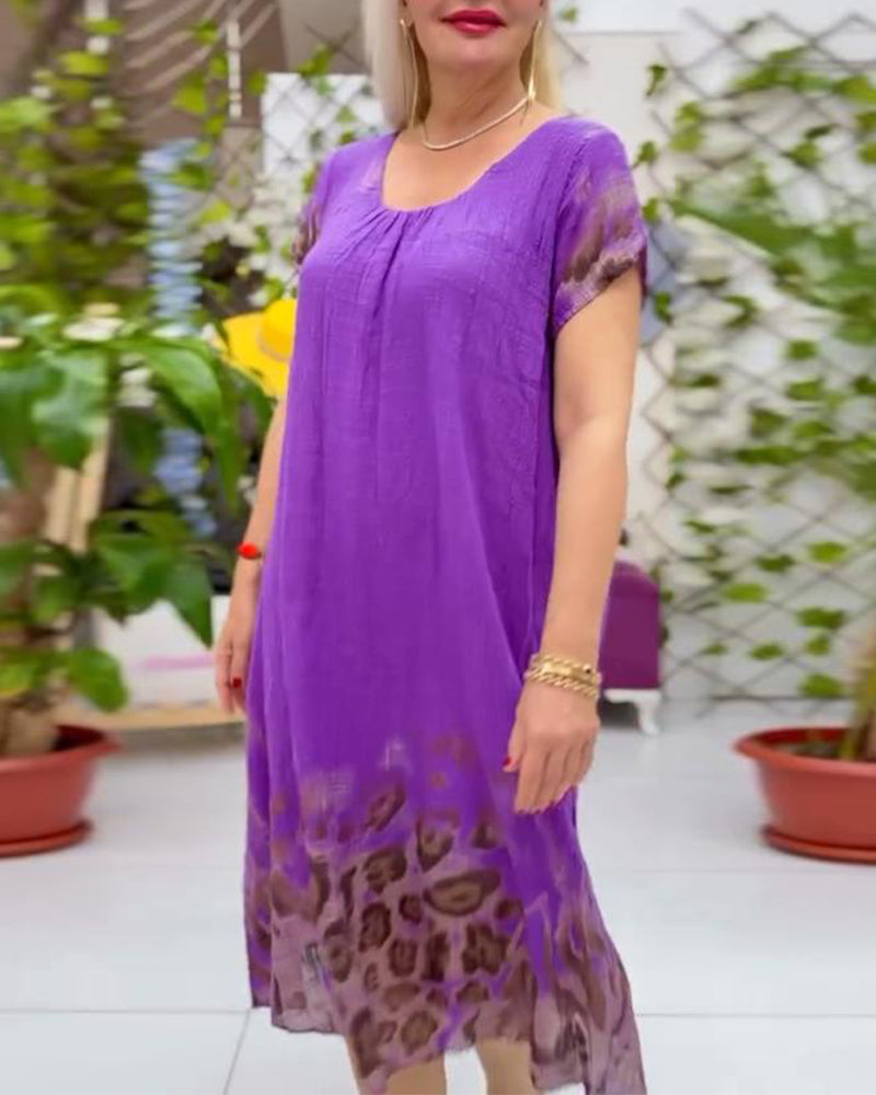 Lockeres, lässiges Kleid mit Rundhalsausschnitt und Leopardenmuster