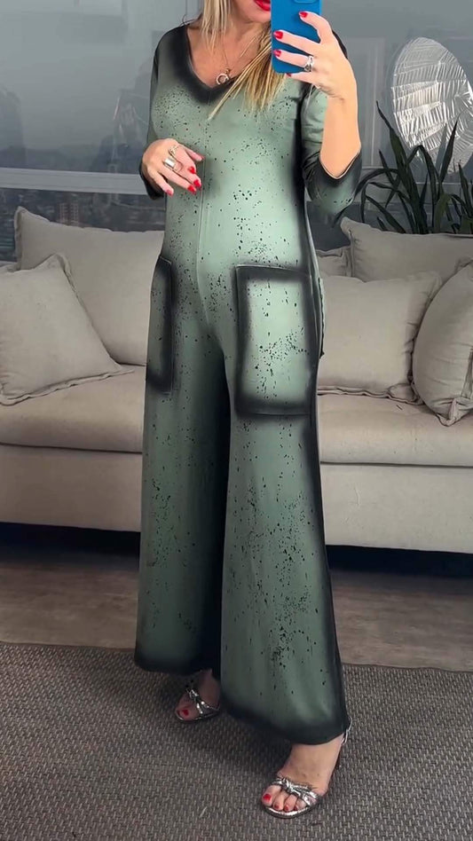 Mono casual de manga larga con bolsillo teñido anudado para mujer