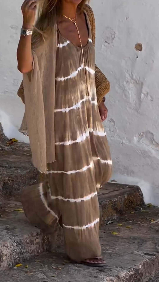 Vestido lencero y cárdigan informal teñido anudado para mujer