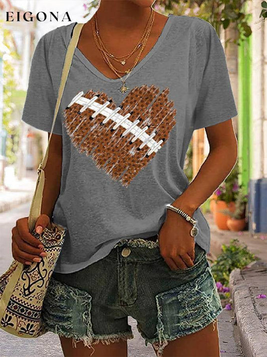 Camiseta informal con cuello en V y estampado de corazones de fútbol para mujer