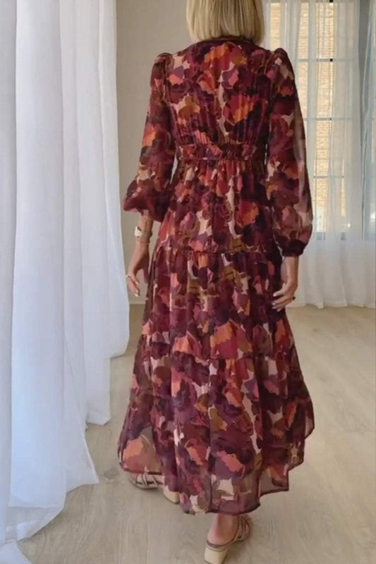 Women's Floral V-neck Long-sleeved Dress