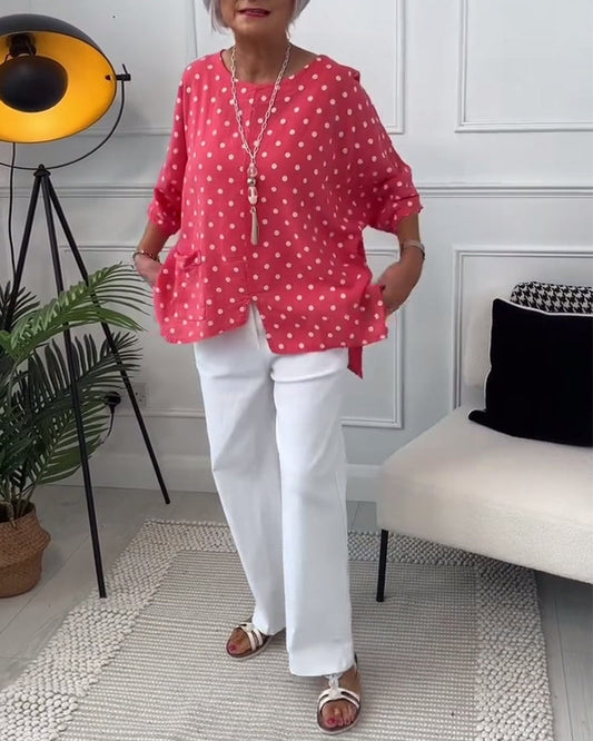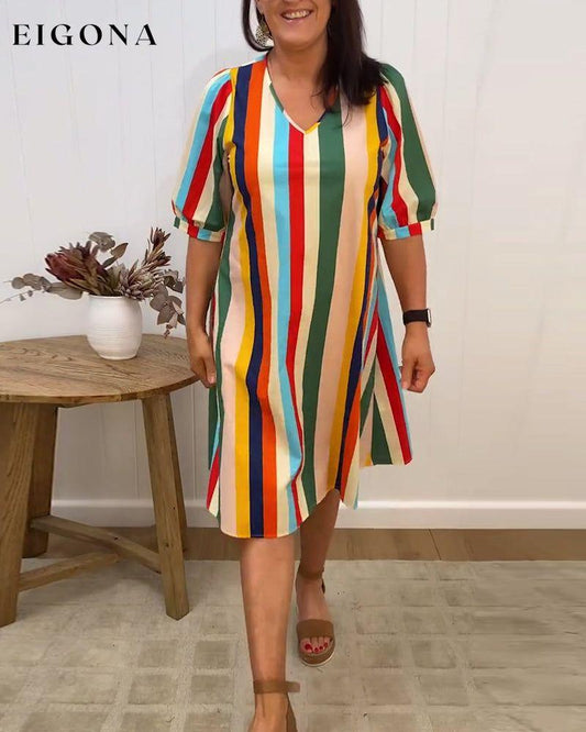 Vestido casual de manga larga con cuello en V y estampado suelto