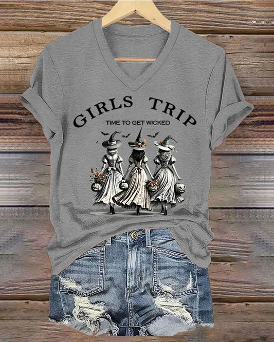 Women's Funny Halloween Witches Girls Trip Time To Get Wicked Casual T-shirt