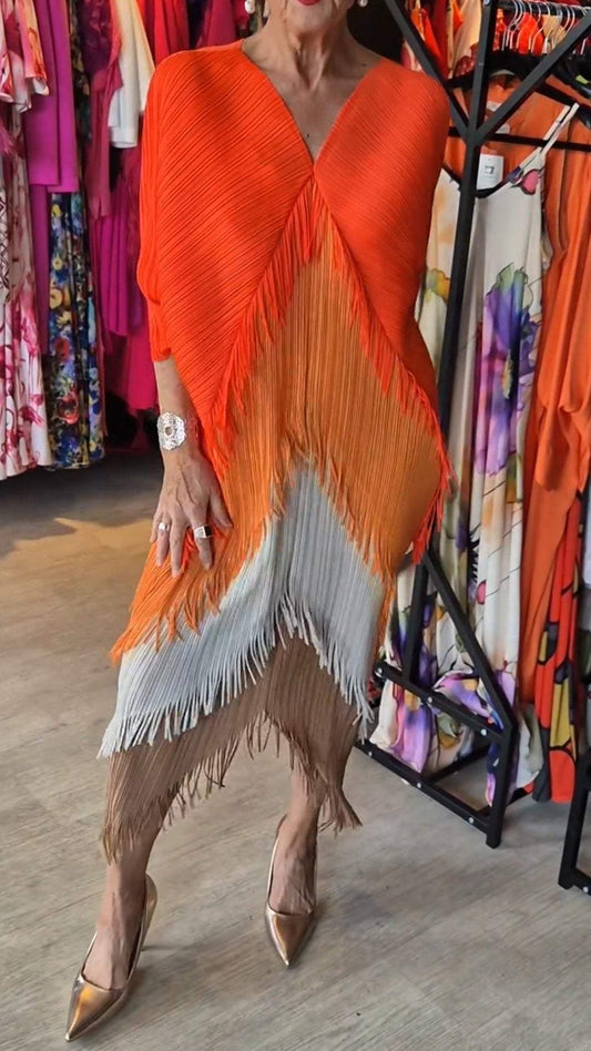Vestido con mangas murciélago y cuello en V con diseño de flecos para mujer