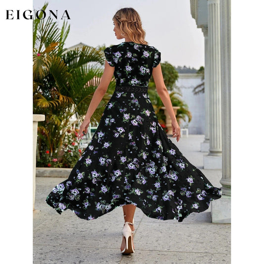 Vestido acampanado con dobladillo alto y bajo con estampado floral de cuerpo completo para mujer