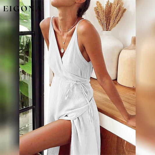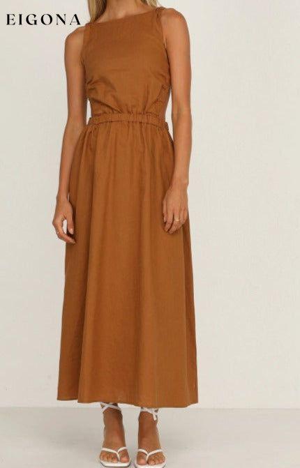 Vestido de lino de algodón sexy de color sólido con espalda abierta para mujer