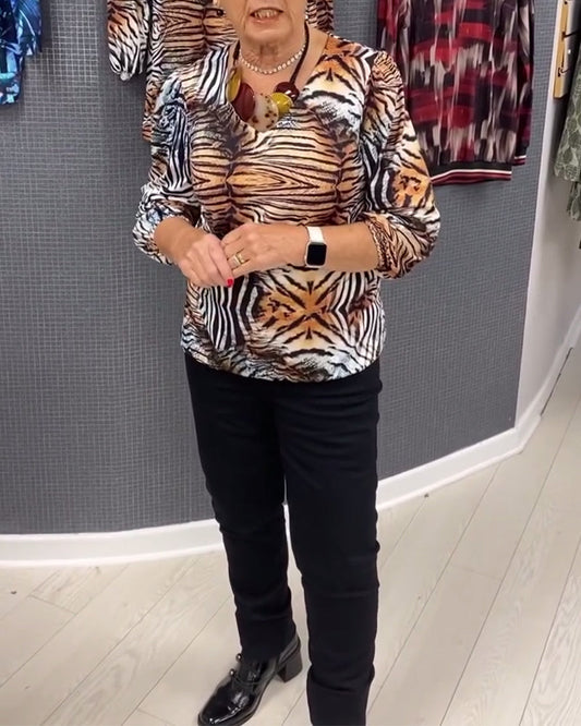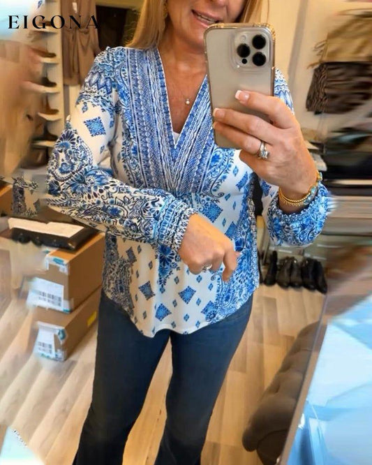 Top casual de manga larga con estampado de estrellas y cuello en V