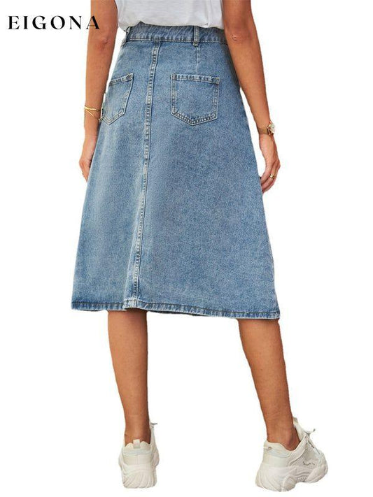 Falda de mezclilla lavada adelgazante con un solo pecho que combina con todo