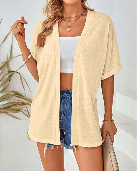 Solid Color Button-Front Short Sleeve Sweater Cardigan