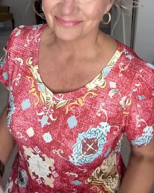 Casual Short Sleeve Round Neck Printed Dress