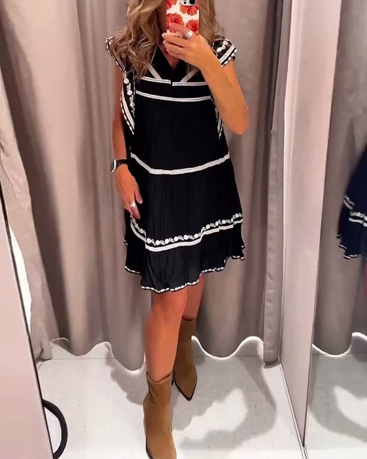Casual V-Neck Lace Print Dress