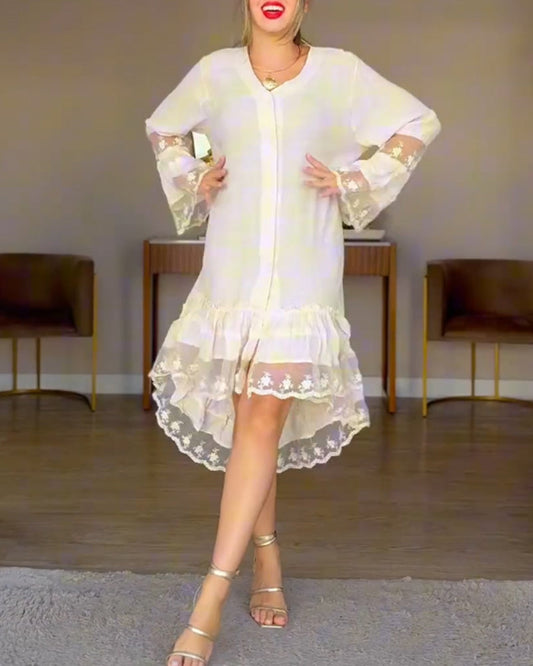 Elegant Lace Ruffled V-Neck Dress