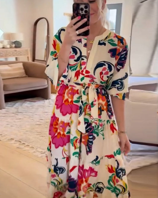 Fashion Printed Tie Waist Dress