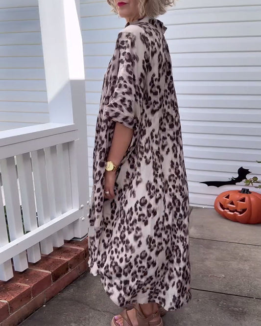 Lapel Animal Leaf Print Dress