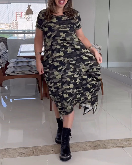 Camouflage Print Slit Dress